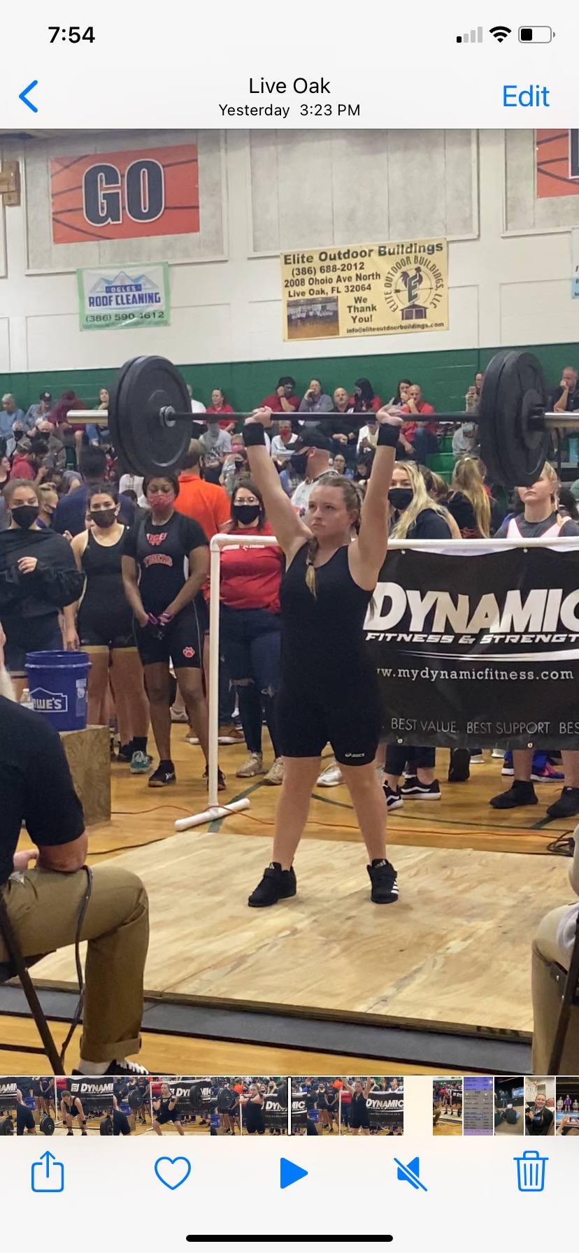 Friday-Six girls from Jay advanced and competed in the 2021 FHSAA State Weightlifting Championships. This year’s state championship was held at Suwannee High School. Below is the list of the ladies that represented JHS and how they placed in their respective weight class.