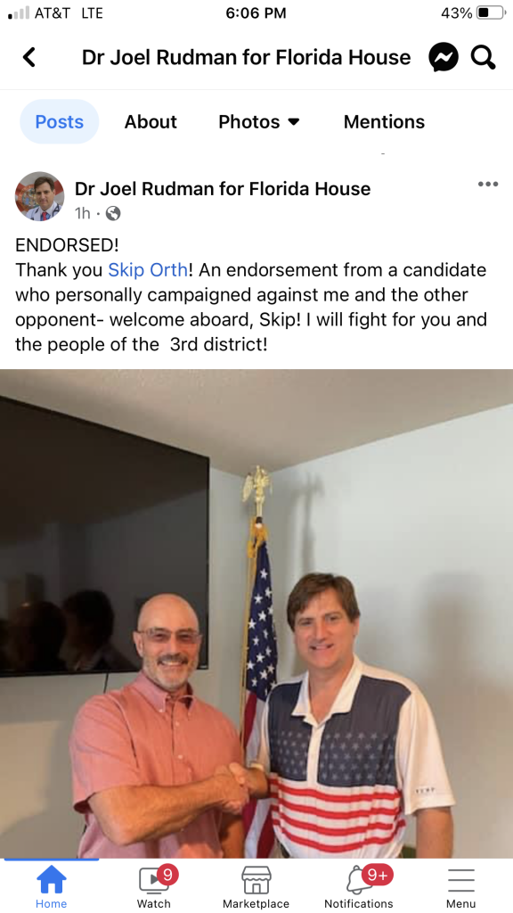 The race to see who will fill Jayer Williamson’s seat is starting to heat up. Last week Skip Orth, who recently dropped out of the race to aid with a health issue with his wife, has fully endorsed Dr. Joel Rudman. Now, there are only two republicans in the race; Rudman and Marius Calkins (wife of County Commisioner James Calkins).