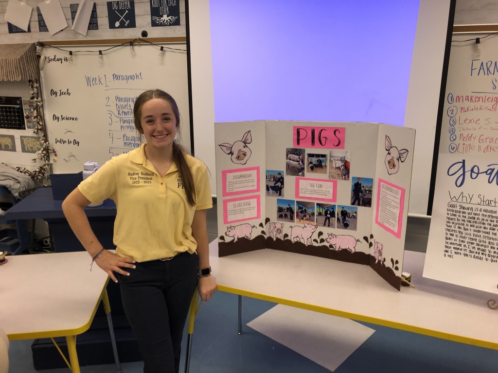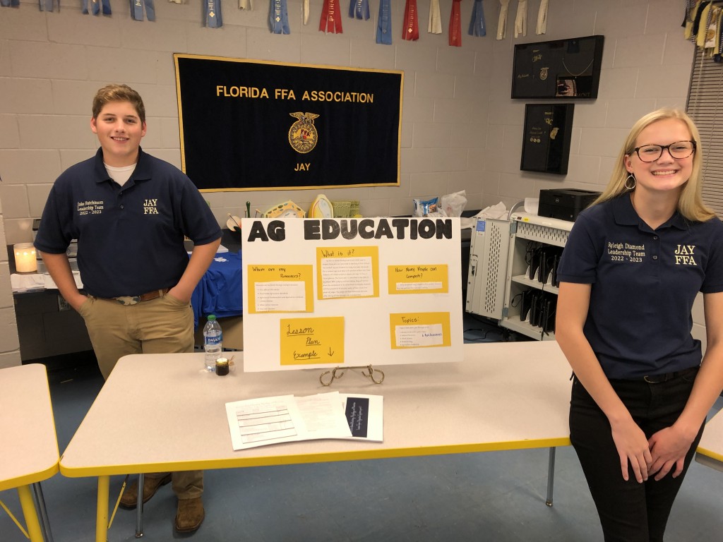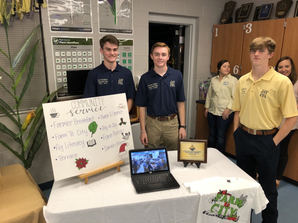 The Jay High FFA Chapter hosted an open house this week in the FFA room. Students set up exhibits to interested members and parents.