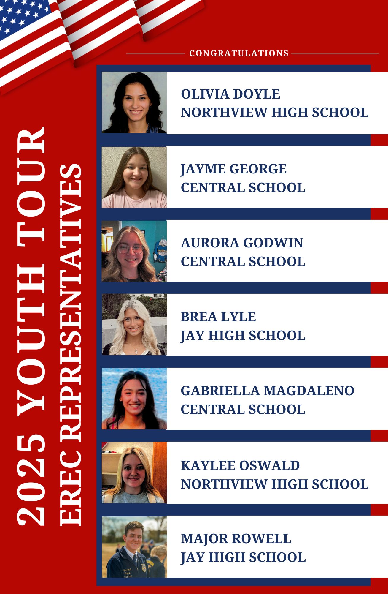 The following students were selected by EREC to participate in the annual Tallahassee Youth Tour event. Congratulations students!