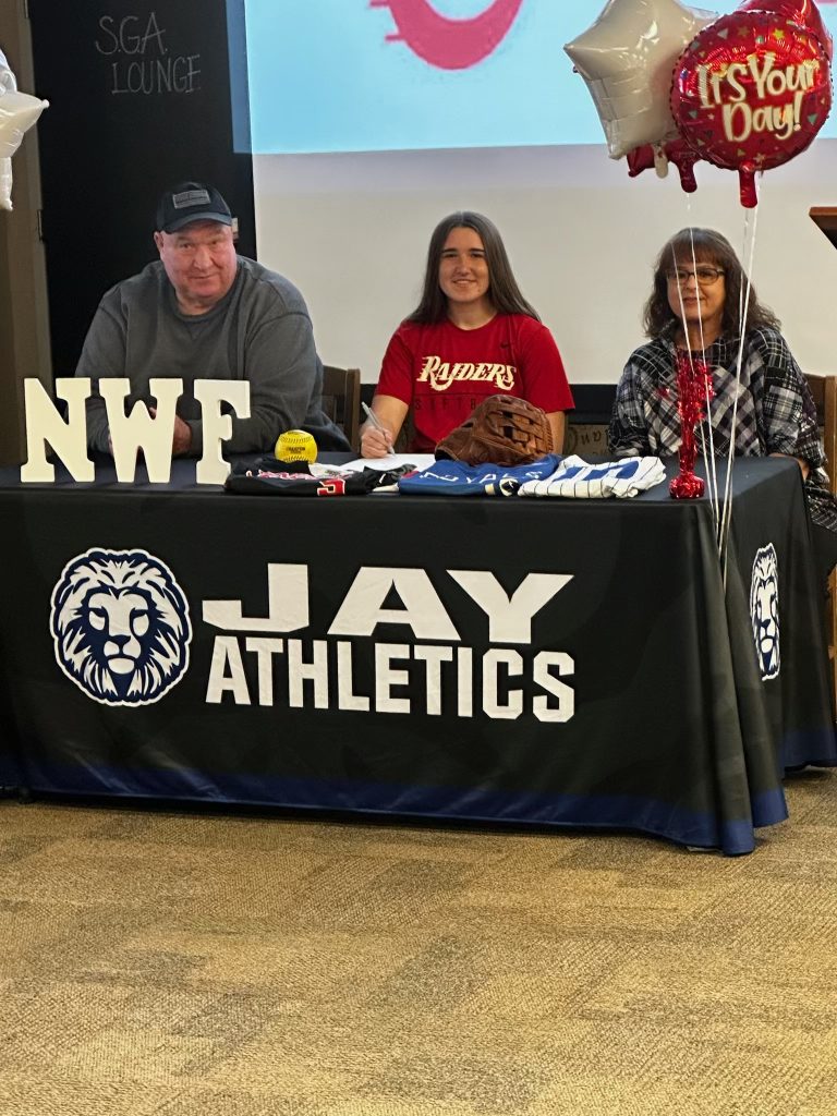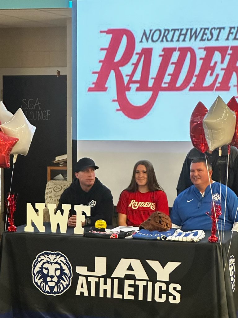 Jay High senior Mollie Frazier signed a softball scholarship with Northwest Florida State College on Wednesday in front of friends and family.