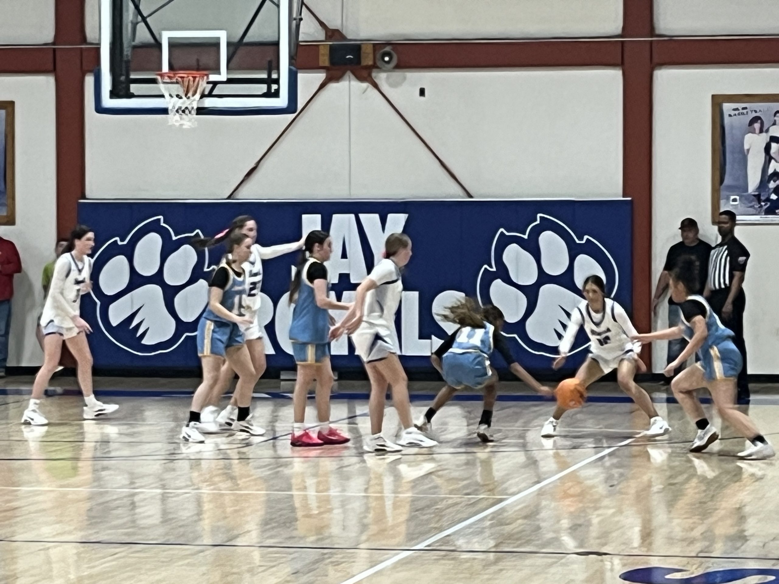 The Jay Lady Royals (23-4) found themselves trailing at halftime, at home, to Laurel Hill (21-7), 24-23. Jay, who had defeated Laurel Hill a week ago for the district championship, had jumped out to an early lead in the game, but a slow shooting start to the second quarter coupled with numerous self-inflicted turnovers, Jay’s first half lead had turned into a deficit.